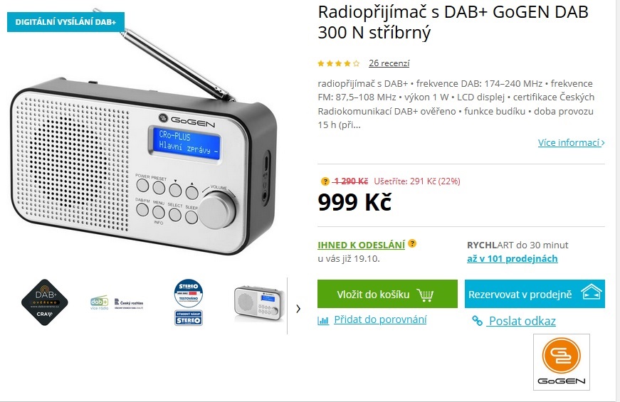 Nejlevnější digitální radio DAB+ jsem objevil na Mironetu. Jedná se o typ Camry CR 1179. Počítal jsem s tím, že to bude nějaké šumítko, ale zvuk docela ujde. Jako podcast do kanceláře dobrý. Za ty prachy 600,-Kč včetně lithiové baterie, která sama o sobě stojí 400,-kč neuvěřitelné. Nabíjení je po kabelu micro USB, který jde strčit do PC a radio tak napájet. Na Datartu mají Gogen 300 N, úplně stejný, ale za cenu kolem 1000,-Kč.